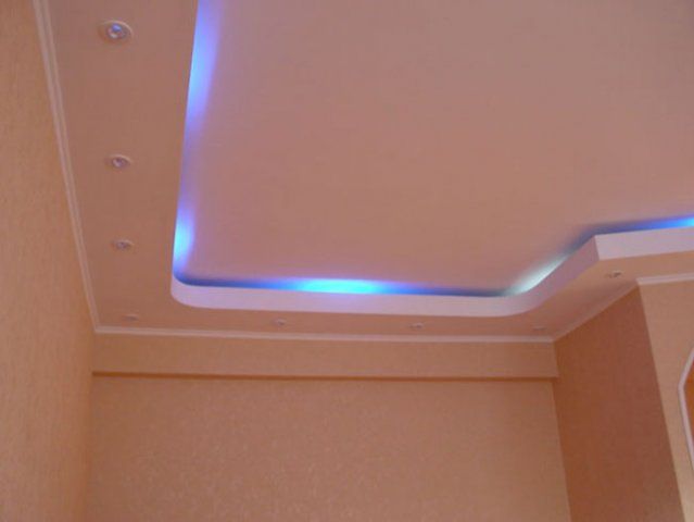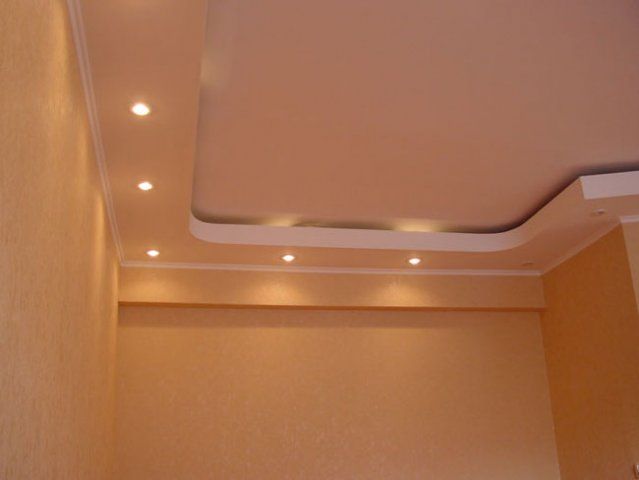 • одноуровневые потолки. Подходят тем людям, которые хотят получить простые ровные поверхности с встраиваемыми точечными светильниками. Установка не вызывает сложностей;