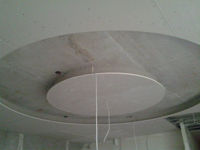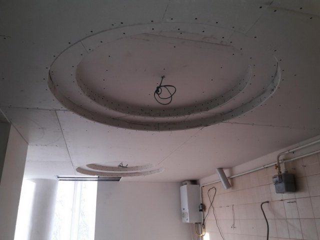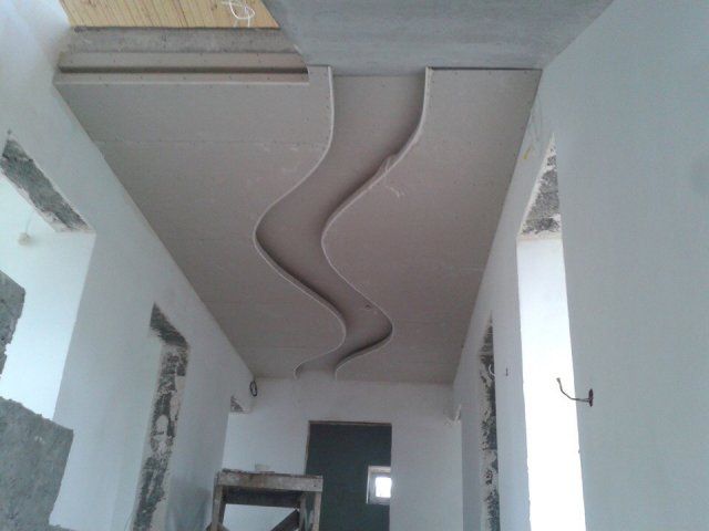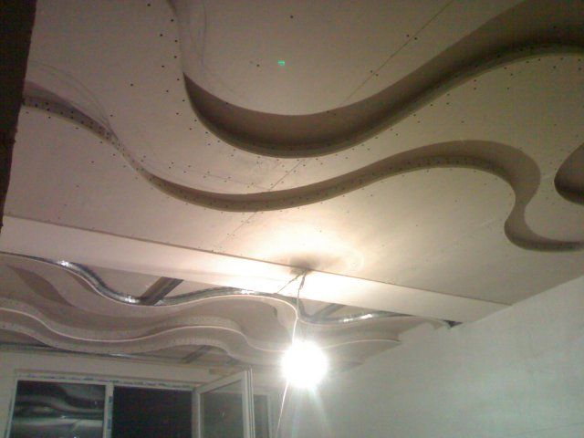 4. Лист хорошо режется, что позволяет создавать из него сложнейшие потолочные конструкции, в том числе с использованием всевозможной лепнины.